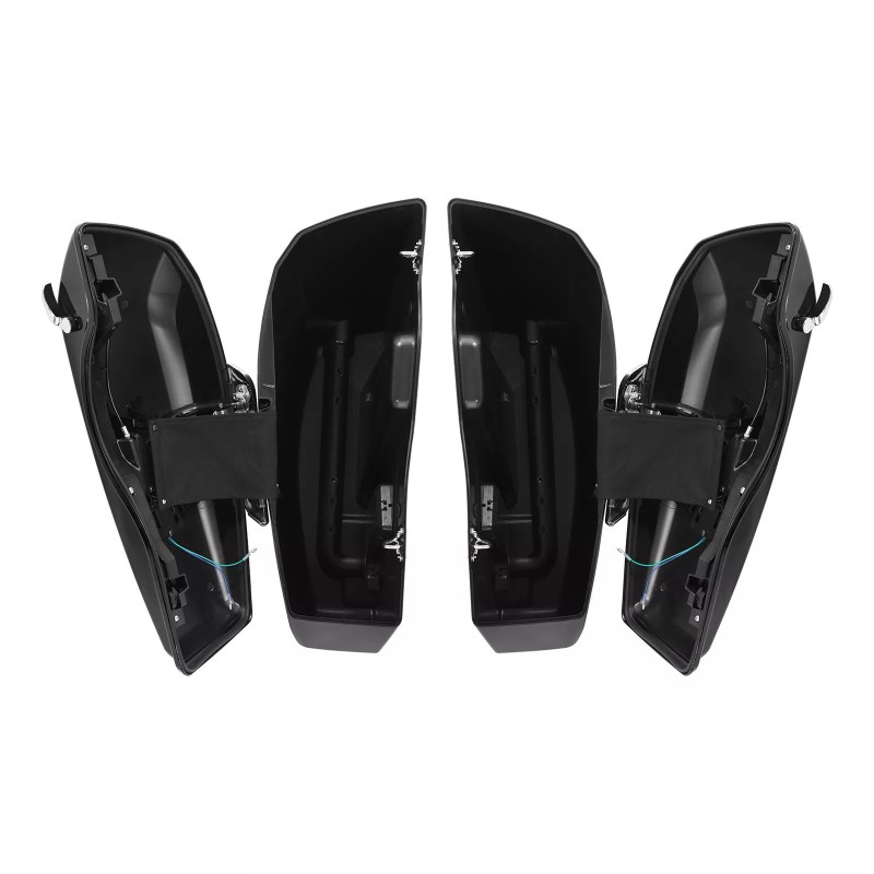 SKU:RP5530-1019B RP5530-1019U Product name: Streached Complete Black Hard Saddlebags Painted ,No Locks Color: Painted NO LOCK / Unpainted NO LOCK Material: ABS Fitments: Harley Touring Models 2014-Later(except '23-later FLHXSE, FLTRXSE, '2..