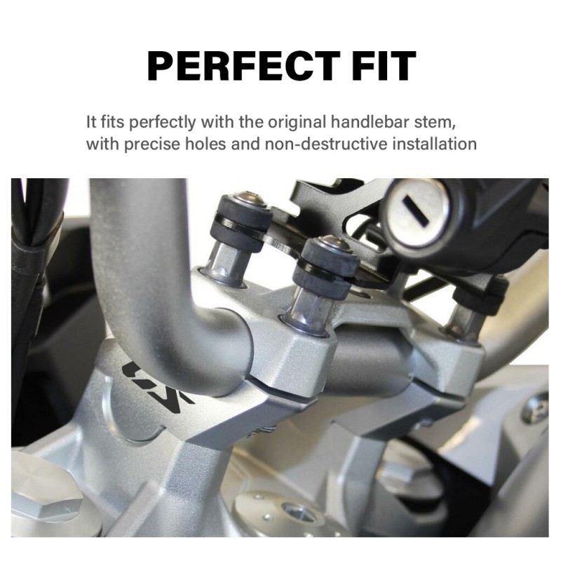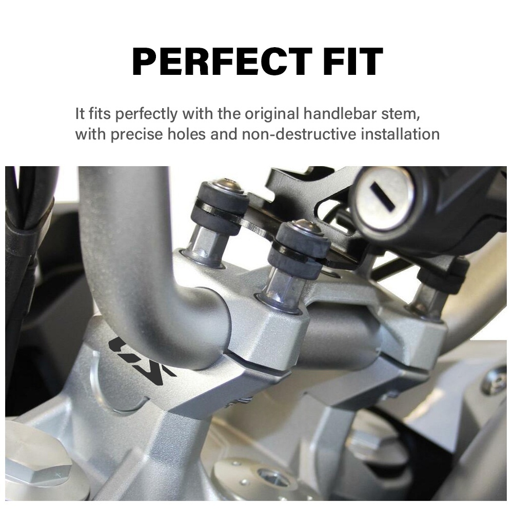 SKU: RP9920-1072B / RP9920-1072S Product name: Motorcycle Handlebar Risers Color: Black / Silver Material: Aluminum Fitment:BMW R1200GS LC 2013-2018 BMW R1200GS ADV 2014-2018 BMW R1250GS 2019-2023 BMW R1250GS Adventure 2019-2024 Features: 1. Fitted for different..